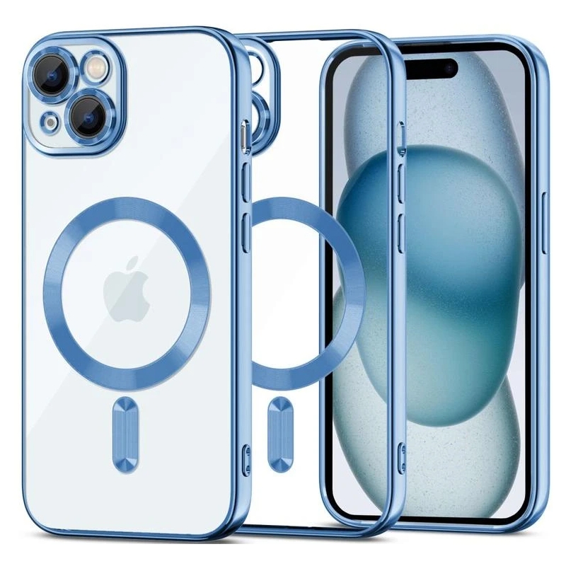 Path: > > > > > Husă iPhone 15 Plus, MagSafe, Transparentă, Ramă Albastru