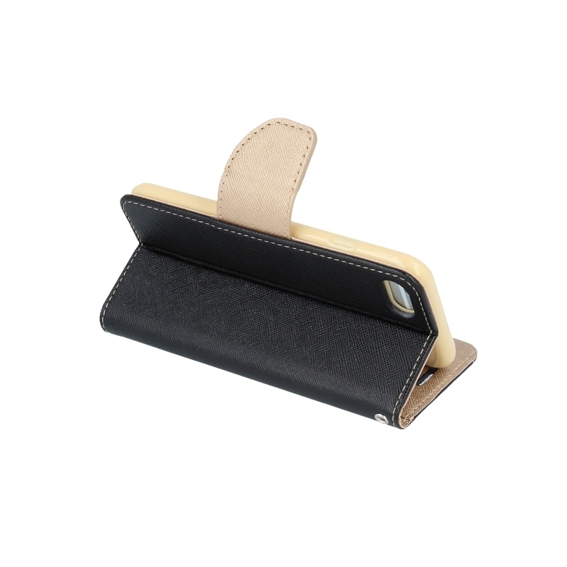 Husa HUAWEI P8 Lite - Fancy Book (Negru&Auriu) este realizata din piele ecologica ce asigura o protectie adecvata dispozitivului, protejand impotriva zgarieturilor sau socurilor mecanice. La interior husa dispune de o carcasa din silicon ce asigura montajul in siguranta a dispozitivului, aceasta avand toate decupajele realizate la milimetru pentru a putea accesa orice functie a telefonului fara a fi nevoie sa fie scos din husa. De asemenea regasim si un buzunar pentru depozitarea cardurilor, actelor sau a banilor. Functia TV Stand asigura confort sporit atunci cand doriti sa vizualizati clipuri video sau imagini pe telefon fara a fi nevoiti sa tineti dispozitivul in mana.